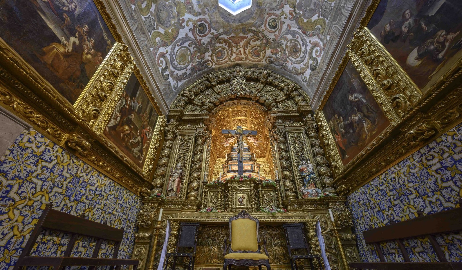 O interior, de uma só nave, exibe uma notável riqueza artística. O altar-mor e os dois altares colaterais apresentam magnífica talha dourada do século XVIII e belos azulejos do século XVII, que envolvem os visitantes numa atmosfera de devoção e serenidade.
