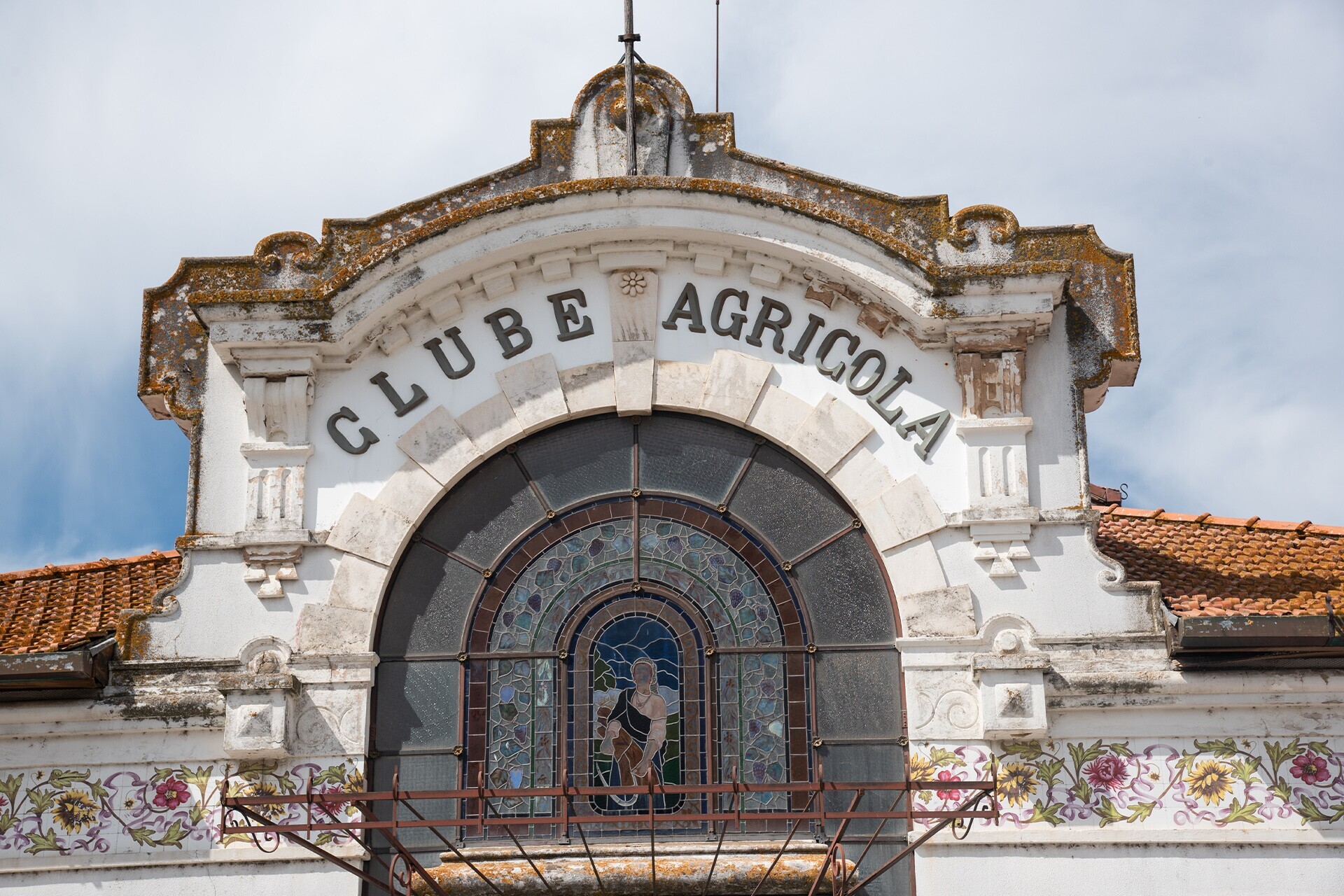 A beleza do edifício é imediatamente reconhecível nos detalhes arquitetónicos que o adornam. O friso de azulejos com motivos arabescos que circunda a construção ao nível do beirado, representando flores estilizadas, e o trabalho de ferro forjado nas janelas e portas, culminando na elegante pala de ferro e vidro sobre a porta principal, são testemunhos da riqueza artística do lugar. No entanto, o elemento mais marcante é, sem dúvida, o magnífico vitral que embeleza a fachada principal. Este vitral, uma verdadeira obra de arte, representa alegoricamente a atividade agrícola, simbolizada por uma ceifeira rodeada por enrolamentos de videira, refletindo a ligação profunda dos membros do clube à terra e à agricultura.