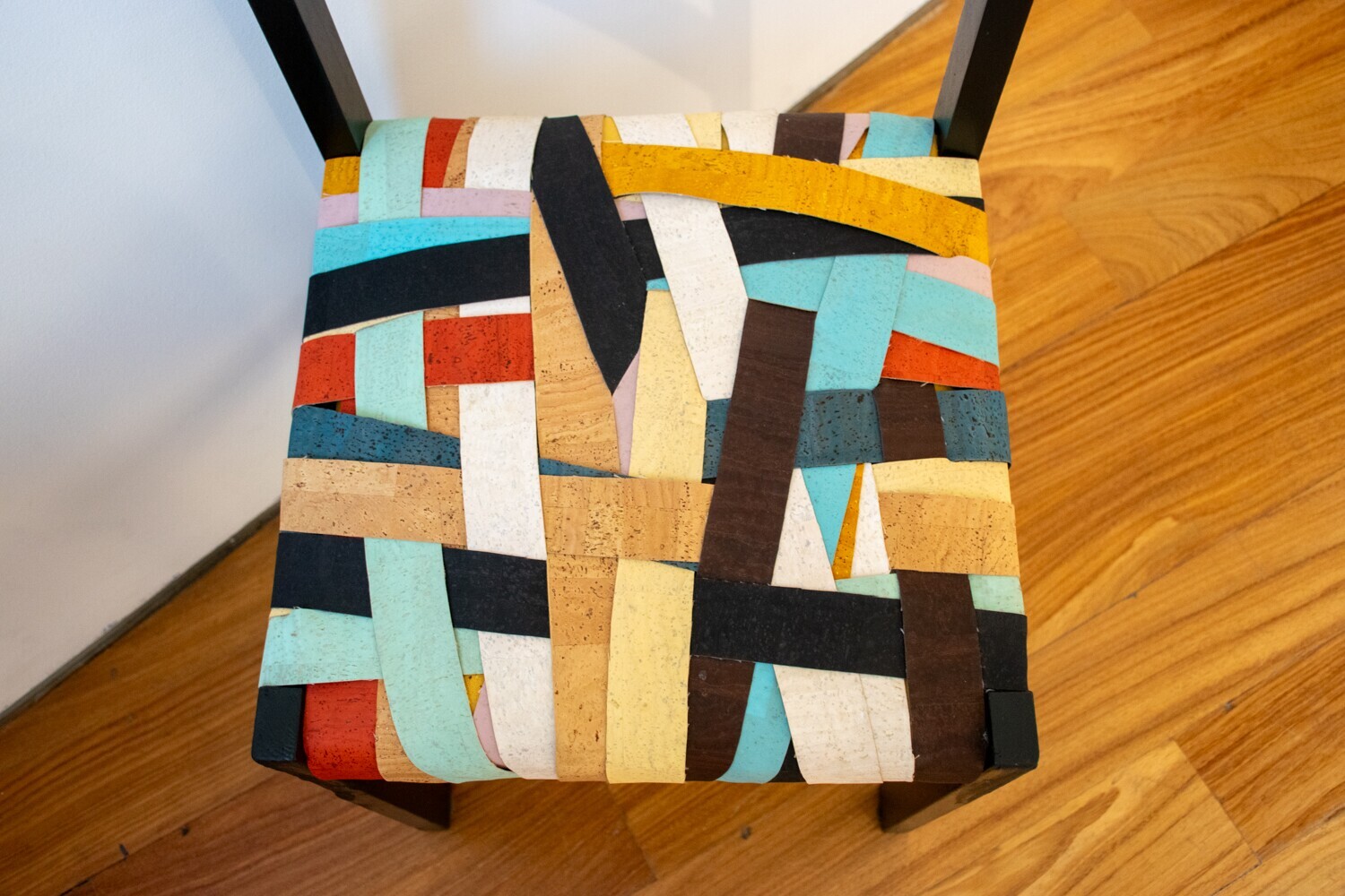 Sendo para si a sustentabilidade uma pré-conduta, transforma essas cadeiras usando tintas e vernizes aquosos bem como amostras de tecidos de desperdício industrial, conjugando cores e padrões num jogo de simetrias e assimetrias.