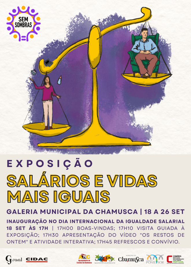 A exposição Salários e Vidas Mais Iguais foi inaugurada no passado dia 18, Dia Internacional da Igualdade Salarial, e estará patente, na Galeria Municipal, até 26 de setembro. Tem como principal objetivo sensibilizar para a temática das desigualdades salariais entre mulheres e homens e foi desenvolvida pelo grupo de jovens da Chamusca e de Ponte de Sôr, no âmbito do projeto “Sem Sombras | Jovens, Igualdade e Outras Economias”.