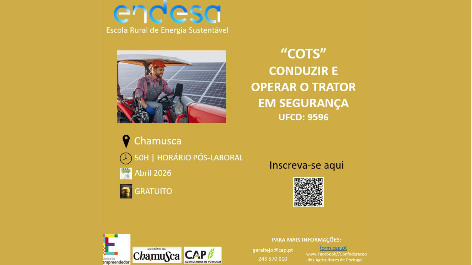 A formação, ministrada pela CAP e promovida pela Endesa, através da sua Escola Rural de Energia Sustentável integra o seu plano global de formação, com o objetivo de promover o desenvolvimento social e económico, a criação de emprego e a fixação da população na região abrangida pelo Projeto de Transição Justa do Pego.