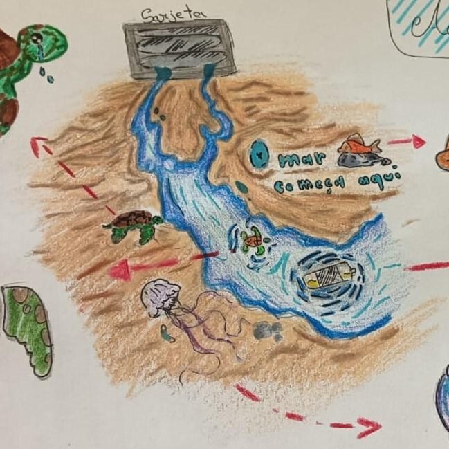 Nesta edição, vários alunos participaram com propostas criativas para sensibilizar a comunidade. O desenho vencedor, elaborado por Amanda Amado, Daniel Dolha e Soraia Lobato, transmite uma mensagem clara: o olhar triste das espécies marinhas pintadas na sarjeta alerta para a correta gestão do lixo e para a necessidade de proteger a vida marinha.